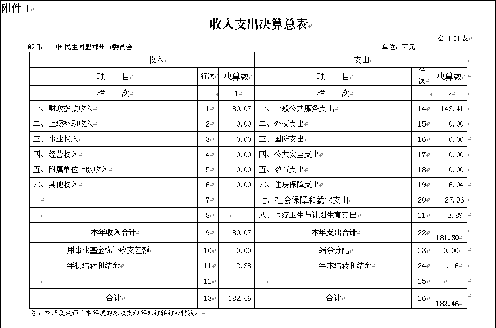 中國民主同盟鄭州市委員會2015年部門決算情況說明及公示表