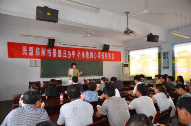 2014年7月1日,民盟鄭州市委在全市同心實(shí)踐基地--唐莊鄉(xiāng)舉辦中小學(xué)教師心理輔導(dǎo)報告會,邀請資深心理咨詢師王小梅為唐莊鄉(xiāng)中小學(xué)80余名教師作心理輔導(dǎo)。