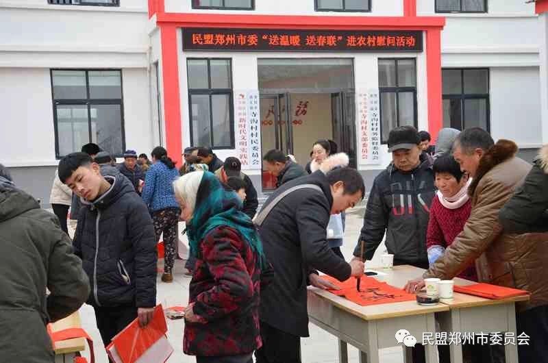 為貫徹黨的十九大精神,大力宣傳的路線、方針政策,傳遞黨和政府對困難群眾關心和關懷,活躍農(nóng)民的春節(jié)文化生活。2019年1月28日,正直農(nóng)歷小年,鄭州市委統(tǒng)戰(zhàn)部和民盟鄭州市委在鄭州市同心實踐基地---唐莊鎮(zhèn)寺溝村聯(lián)合舉辦“送溫暖 送春聯(lián)”進農(nóng)村慰問活動,為村民現(xiàn)場寫春聯(lián),送祝福,受到了村民贊贊揚。