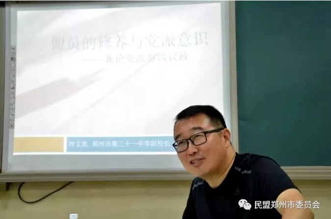 鄭州中學(xué)副校長薛善廣代表中共鄭州中學(xué)黨總支針對本次培訓(xùn)提出了學(xué)習(xí)目標(biāo):一是要深入學(xué)習(xí)貫徹習(xí)近平新時代中國特色社會主義思想和中共十九大精神,牢固樹立“四個意識”,堅定“四個自信”。二是繼承民盟優(yōu)良傳統(tǒng),自覺接受鄭州中學(xué)黨組織的領(lǐng)導(dǎo),爭取統(tǒng)戰(zhàn)部的支持和幫助,切實加強領(lǐng)導(dǎo)班子建設(shè)和后備干部隊伍建設(shè)。三是切實增強基層組織活力,積極主動、富有成效地做好組織發(fā)展工作。四是要進(jìn)一步加強制度建設(shè),建立健全組織工作高效合理的運行機(jī)制。