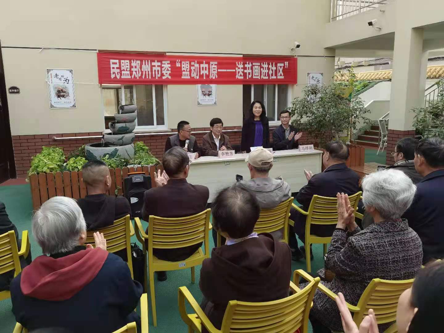 10月29日下午,由民盟鄭州市委主辦、民盟二七總支承辦的“盟動(dòng)中原——送書畫進(jìn)社區(qū)”活動(dòng)在二七區(qū)綠云社區(qū)舉行。民盟鄭州市委秘書長(zhǎng)宋喜玲、二七區(qū)委統(tǒng)戰(zhàn)部常務(wù)副部長(zhǎng)李艷芳、淮河路辦事處黨工委副書記馬祥利、二七區(qū)綠云社區(qū)黨支部書記羅麗琴、和民盟二七總支的盟員參加了本次活動(dòng)。活動(dòng)由民盟二七總支副主委劉建偉主持。